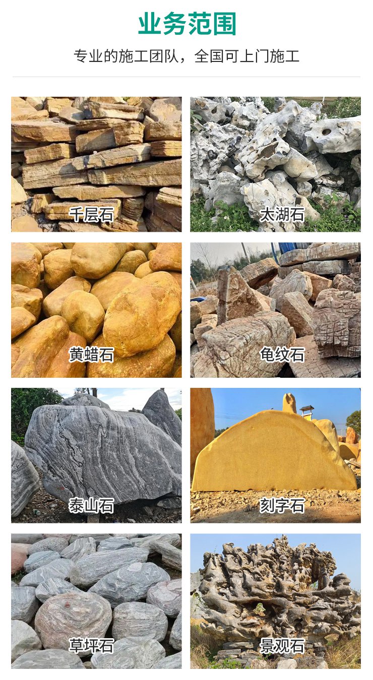 专业石材基地,各种景观石批发。提供高质量的假山设计与施工服务,公司的假山作品广泛应用于旅游风景区、影视基地、大型游乐园、主题公园、生态园、房地产小区以及私家庭院等地。团队成员具备丰富的假山制作经验,能够确保施工质量和工期。